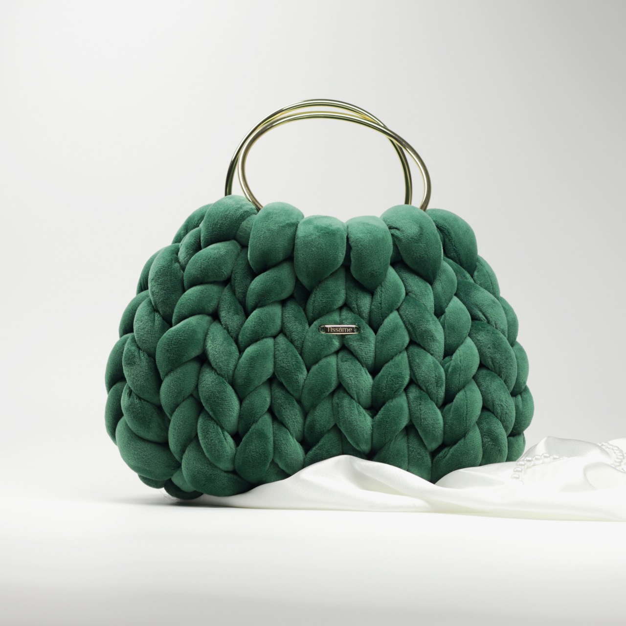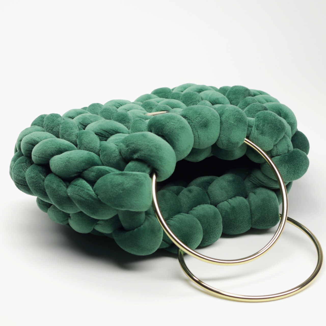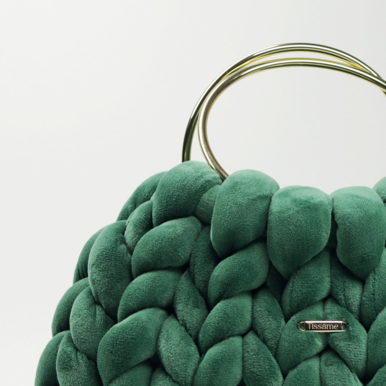 Kolor szlachetnego szmaragdu i głębokiej natury. Butelkowa zieleń w plecionym ręcznie welurze to synonim luksusu i tajemnicy. Złote detale uchwytów idealnie komponują się z zielenią, tworząc dodatek, który wyróżni Cię w dyskretny, minimalistyczny sposób.